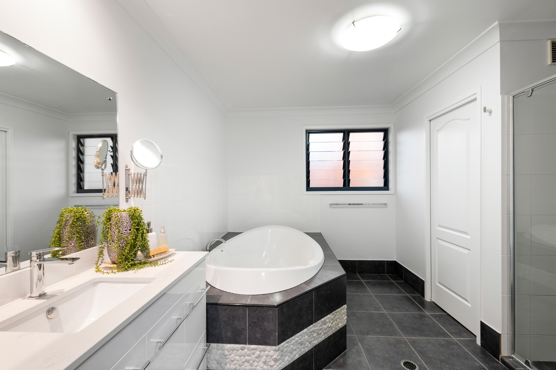 There are four oversized bedrooms, three bathrooms (including two with bathtubs). The master suite is situated on the ground floor with a walk-in robe and ensuite. The upstairs bedrooms all feature built-in robes, and one boasts a private balcony.