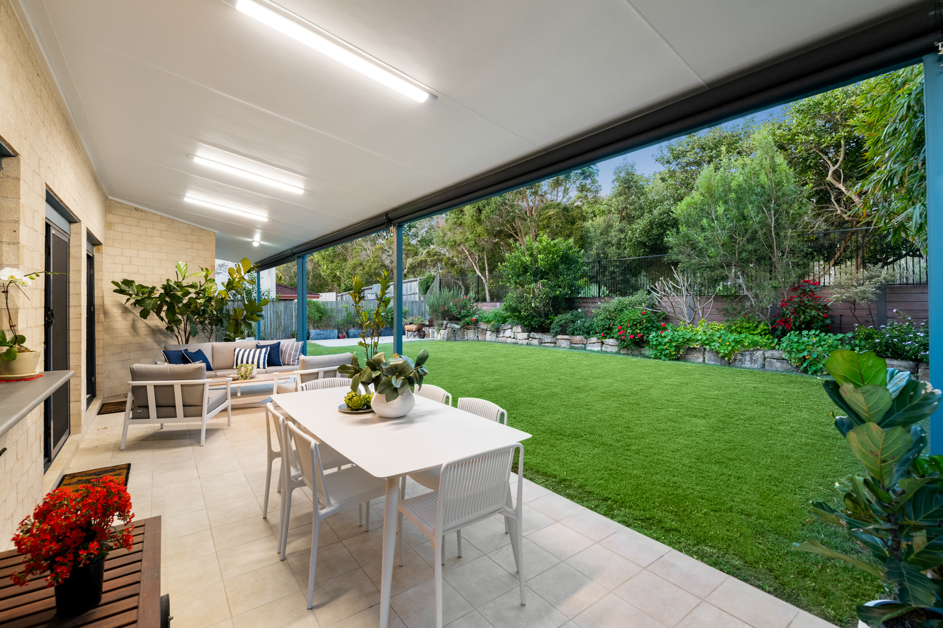 Entertain and relax on the covered rear patio, which rests by the flat backyard and established gardens, which form a leafy green backdrop shielding you from view.