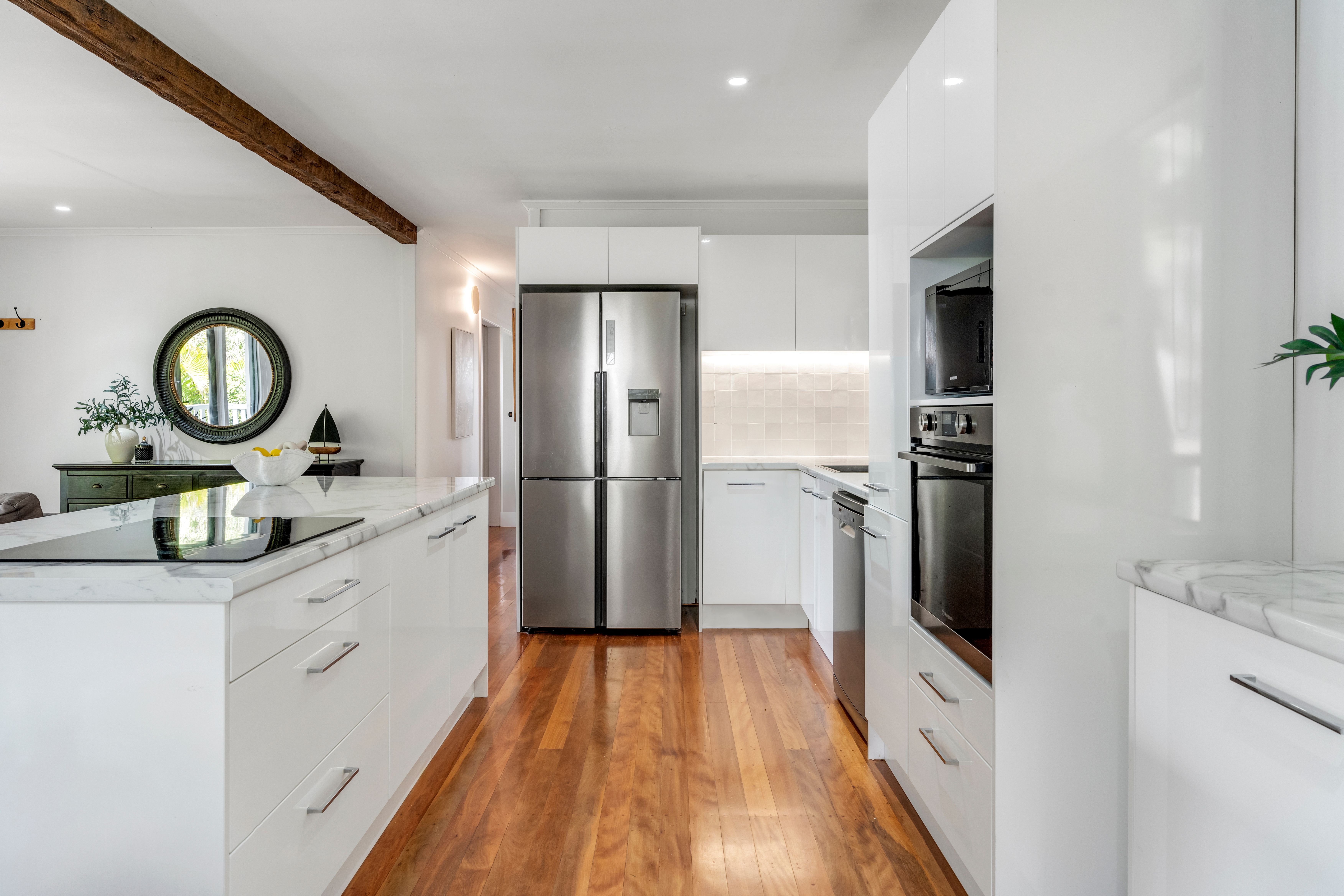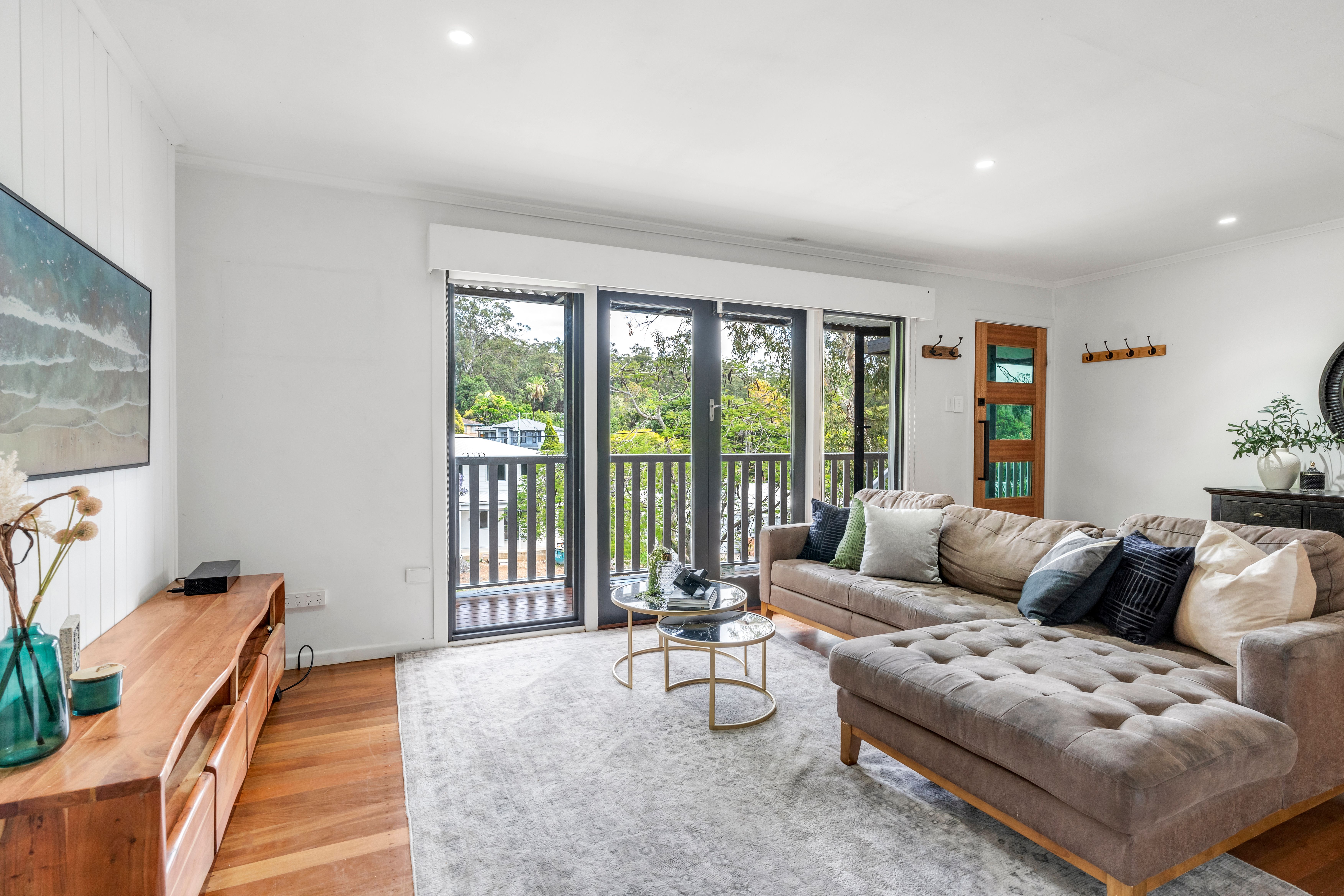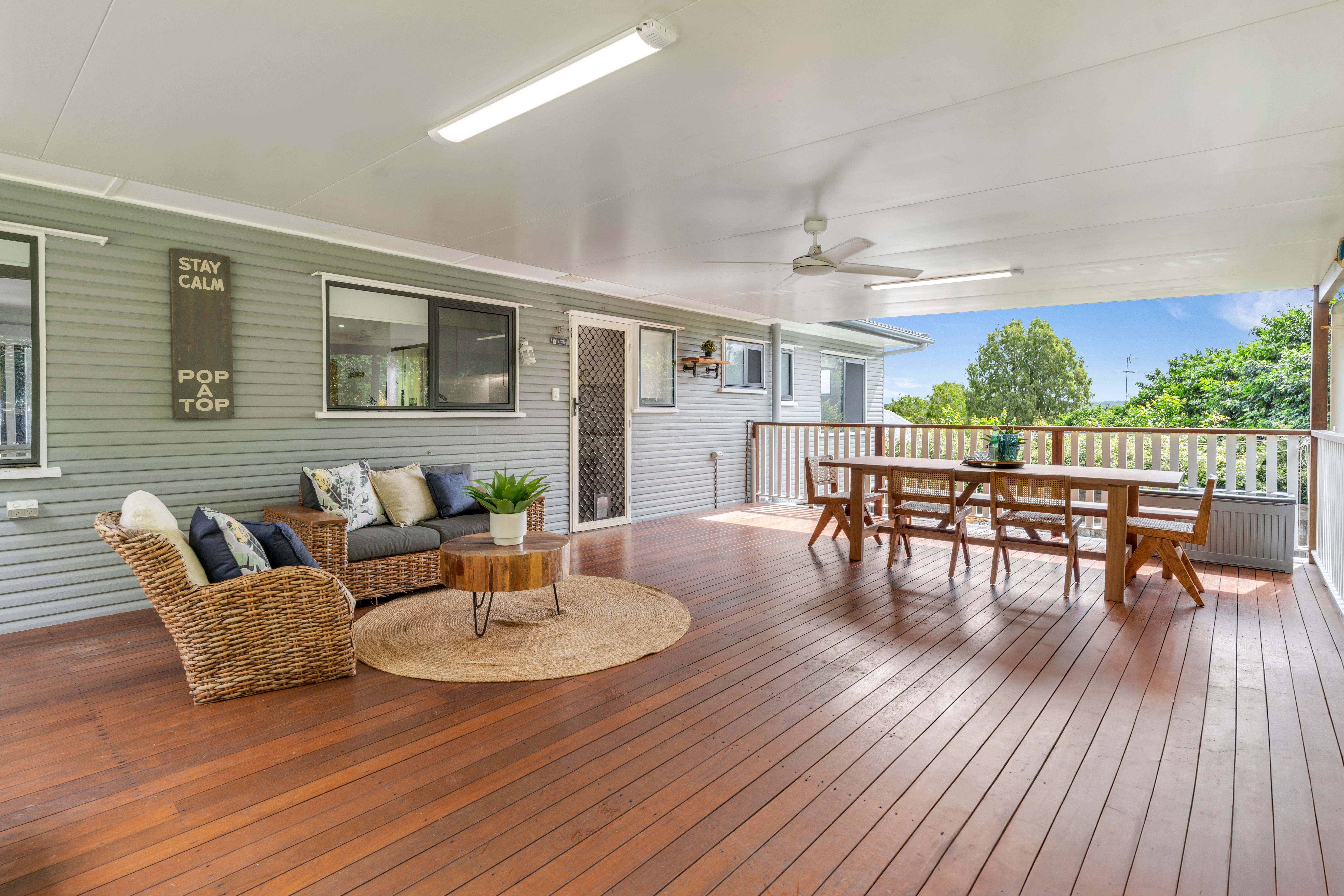 Inside, you'll find polished timber floorboards flowing throughout the spacious layout, complemented by high ceilings and an inviting open floor plan that maximizes natural light. Large sliding glass doors seamlessly connect the central living area to the outdoors, wrapping the home in a timber verandah where you can relish stunning mountain views right from your doorstep.
