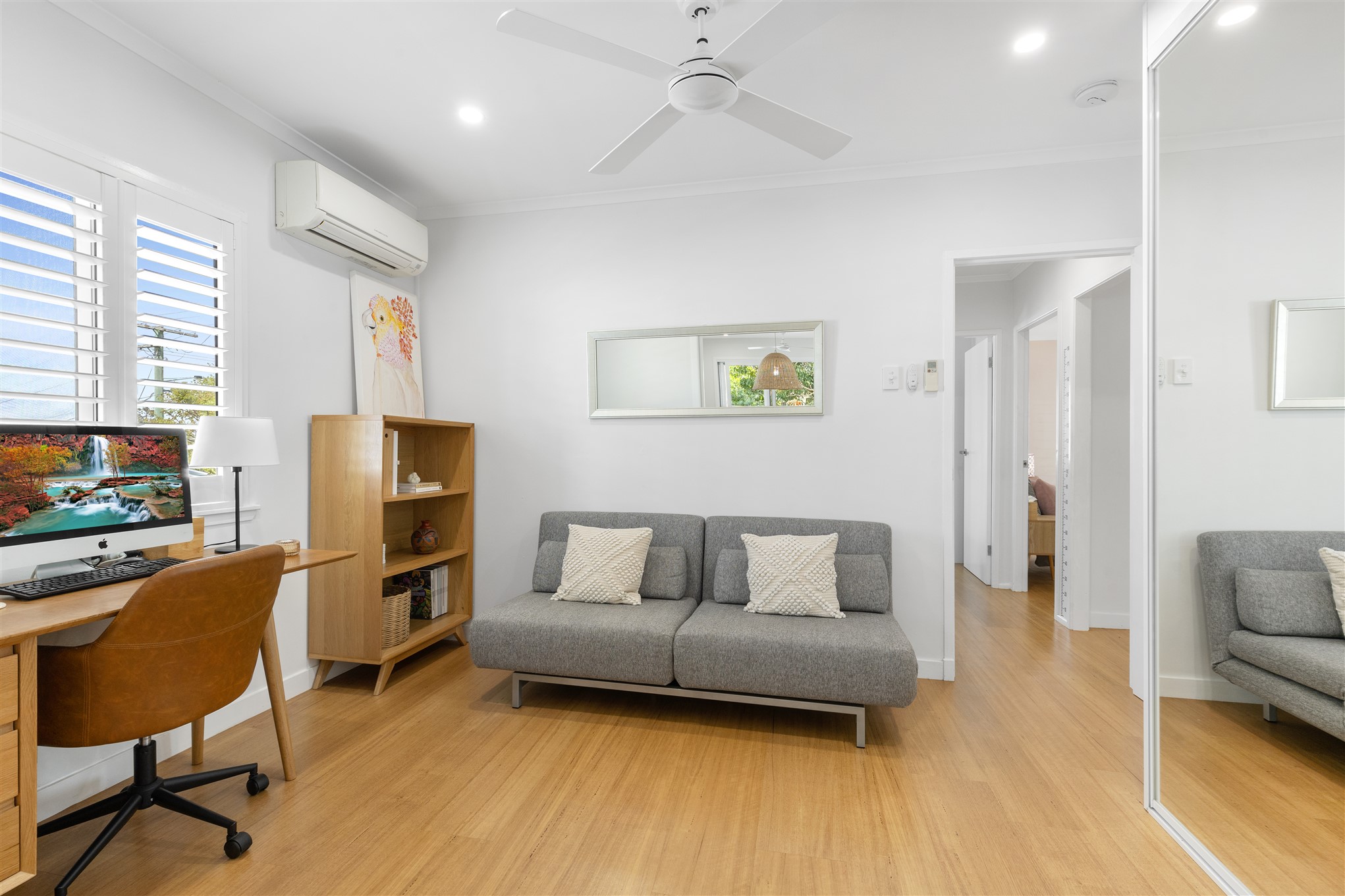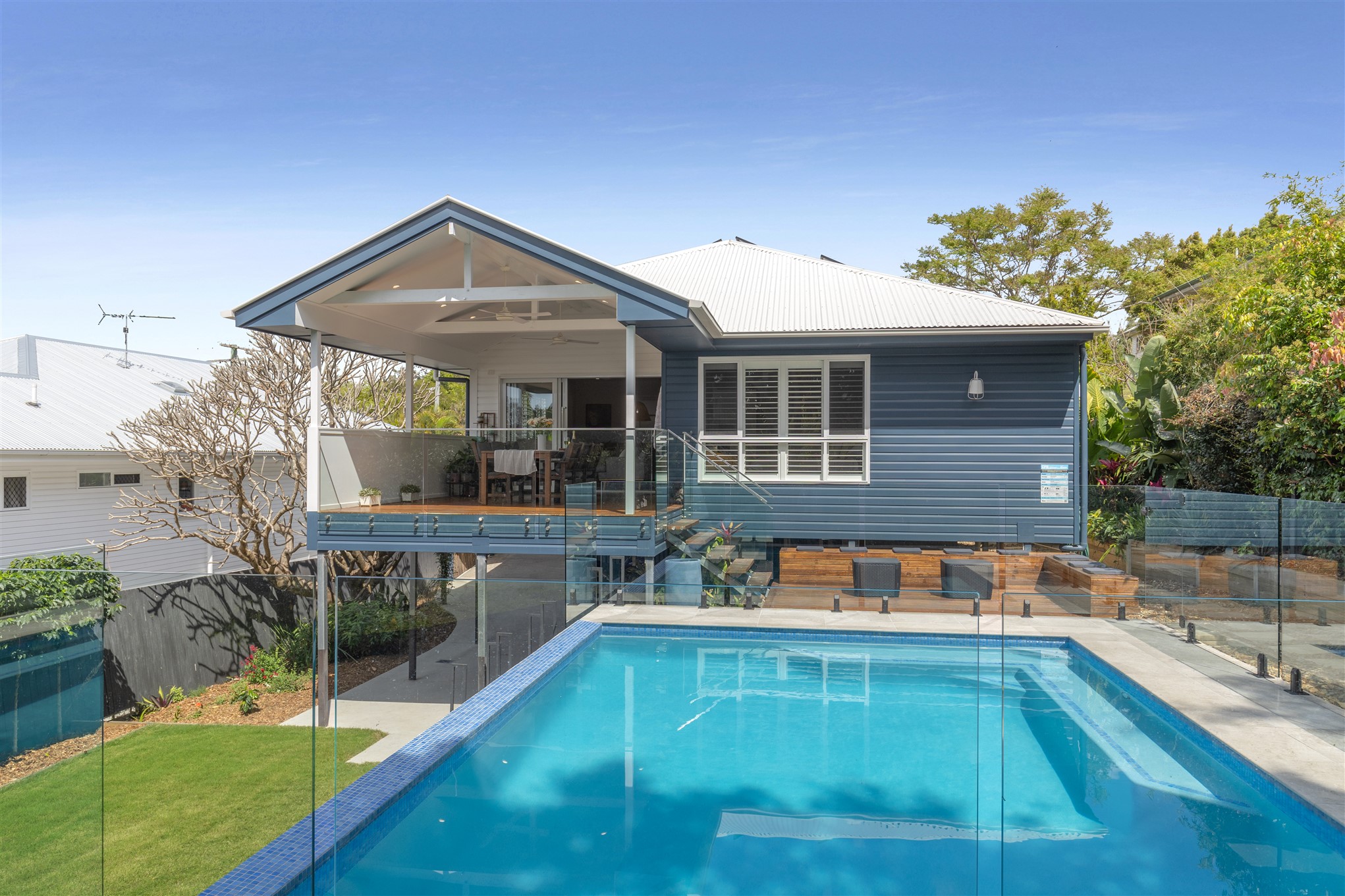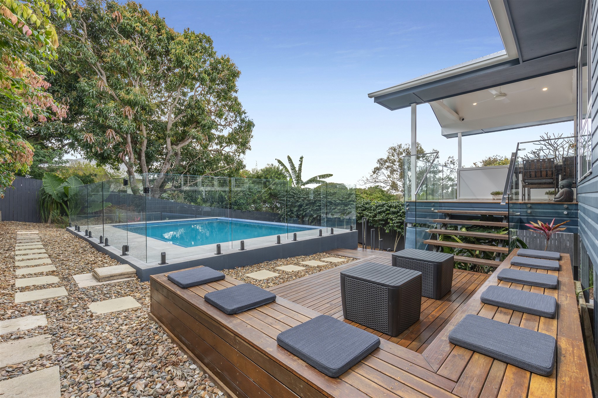 FEATURES AT A GLANCE: - Four spacious bedrooms, including an oversized master with walk-in robe and stunning ensuite - Modern family bathroom with bathtub, perfect for kids - Designer kitchen with Caesarstone benchtop, white cabinetry, and abundant storage - Open-plan living/dining area flowing onto a expansive, covered rear deck - Second internal living area means that everyone has space to relax and spread out - Sparkling in-ground pool with glass fencing and open-air deck area - Landscaped, 627m2 yard with large lawn for kids and pets to play - Versatile fourth bedroom that can double as a home office or home business space - Under-house storage, workshop, and large family laundry - Quiet, private location with lush greenery surrounding the property - Solar panels for more affordable electricity as well as Solar Hot Water heater