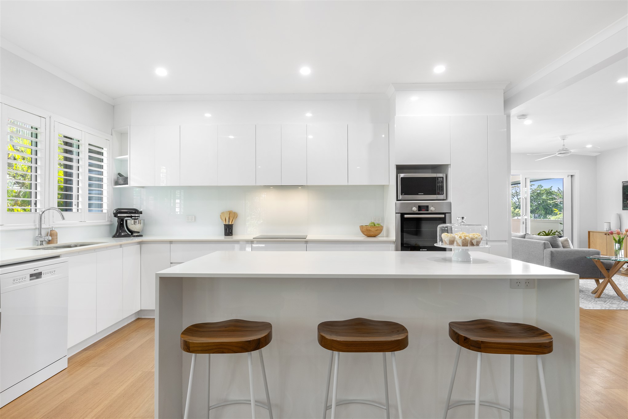 The heart of the home is the designer kitchen, featuring a Caesarstone benchtop, timeless white cabinetry, and ample storage-perfect for both everyday family meals and hosting gatherings. Overlooking two living areas and the dining room, this home has designed for modern living.