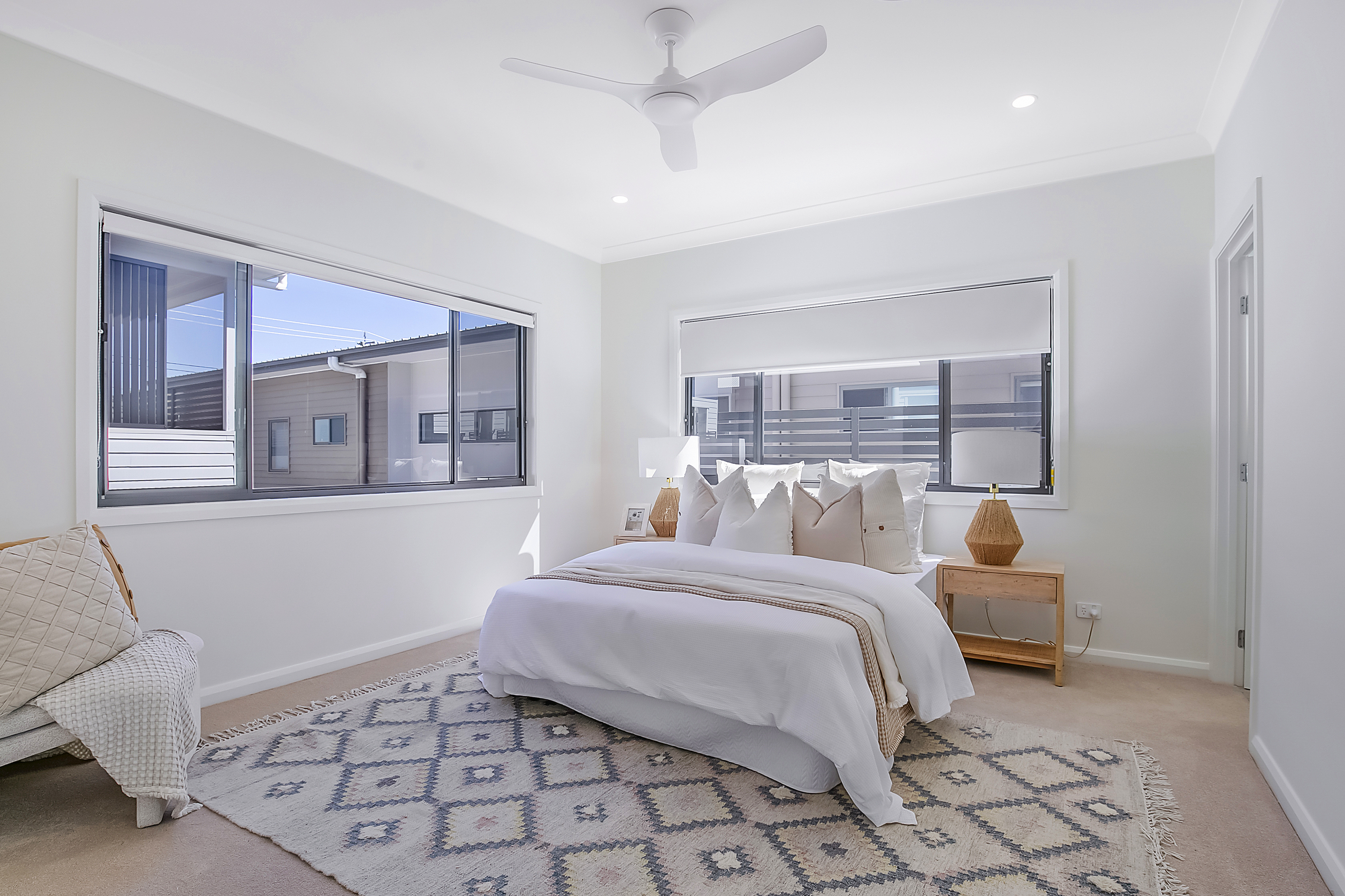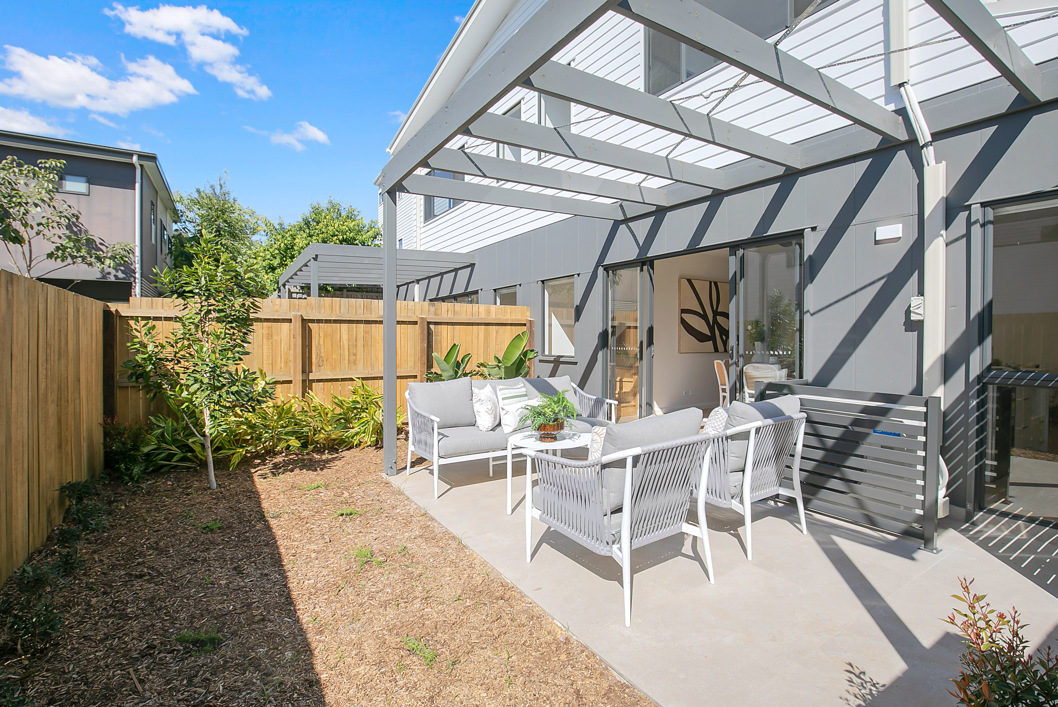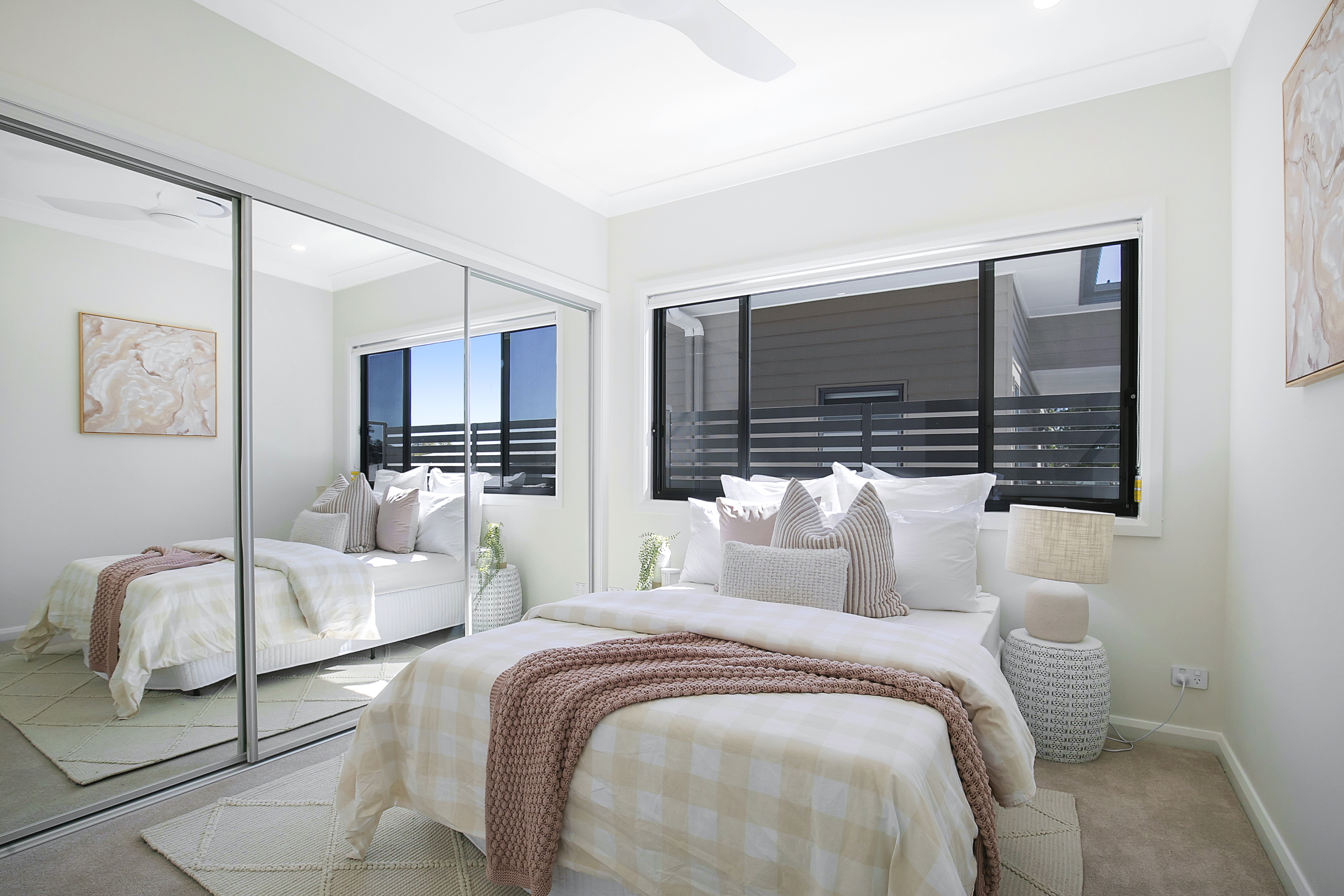 Townhouse 4: - 2-level design with 3-bed, 2.5-bath, 2-car - Open living and dining area extending to a balcony - Stonetop kitchen with premium appliances - King sized Master suite with a walk-in robe and ensuite - 2 additional bedrooms upstairs with built-in robes - Separate internal laundry - Remote double-car garage