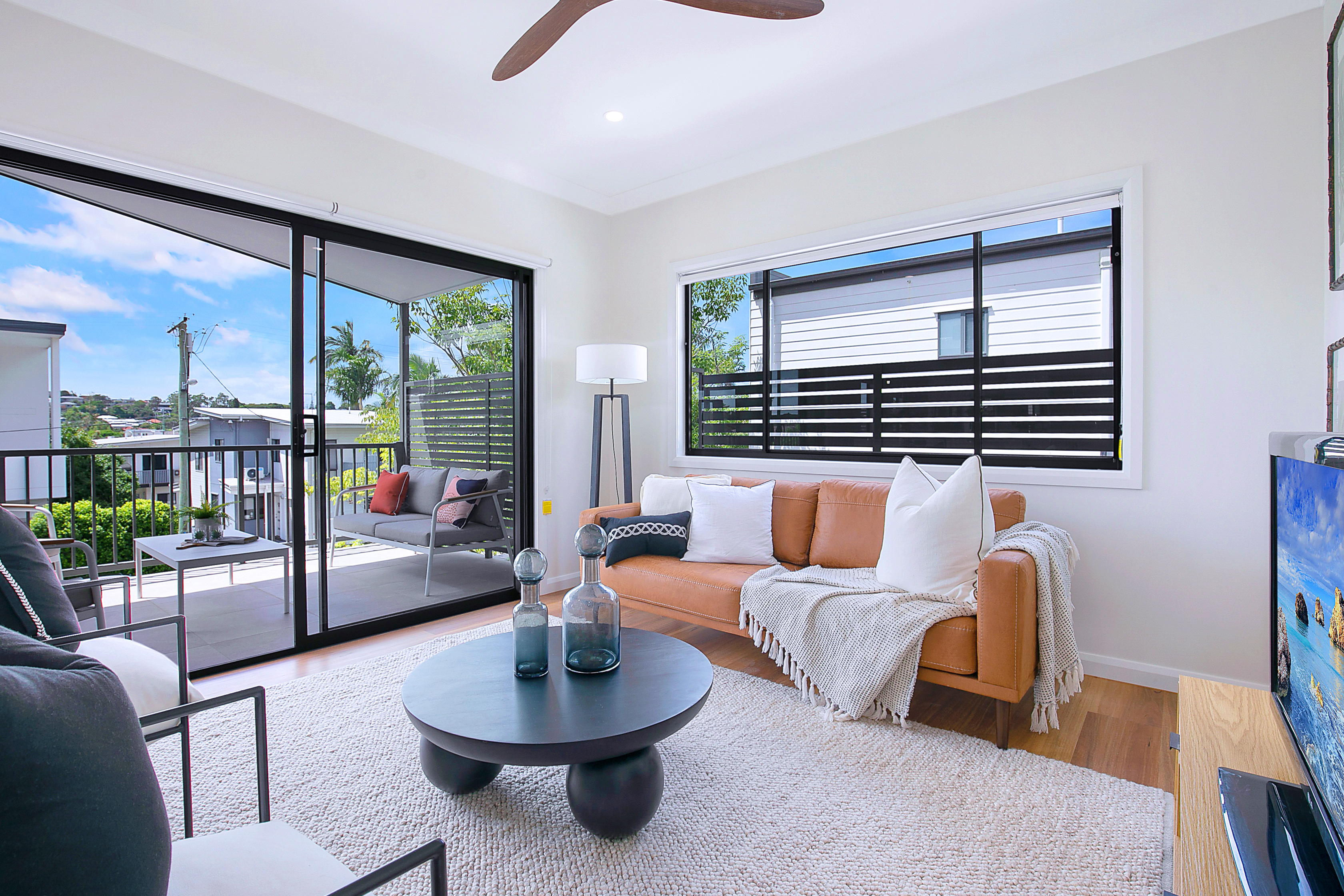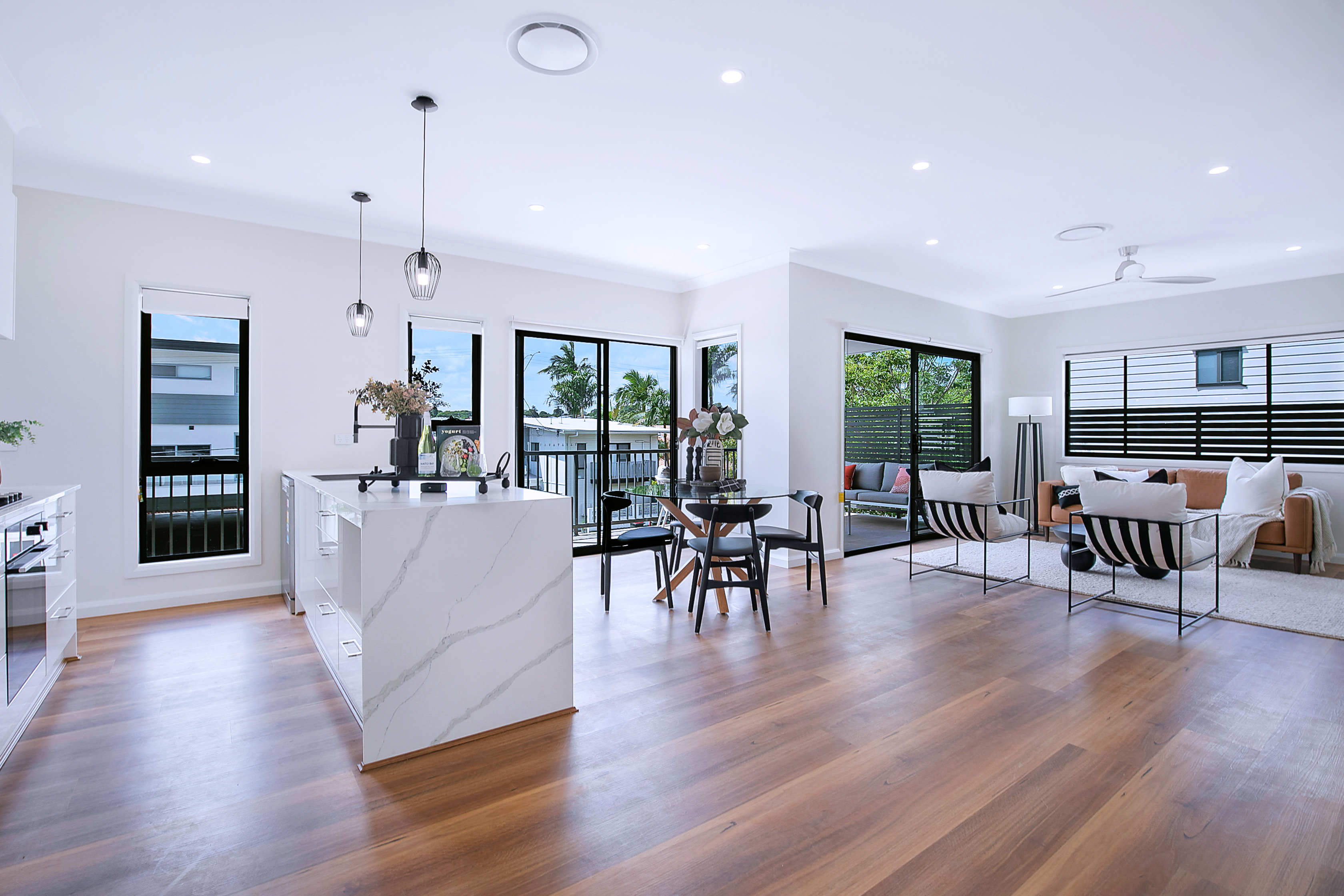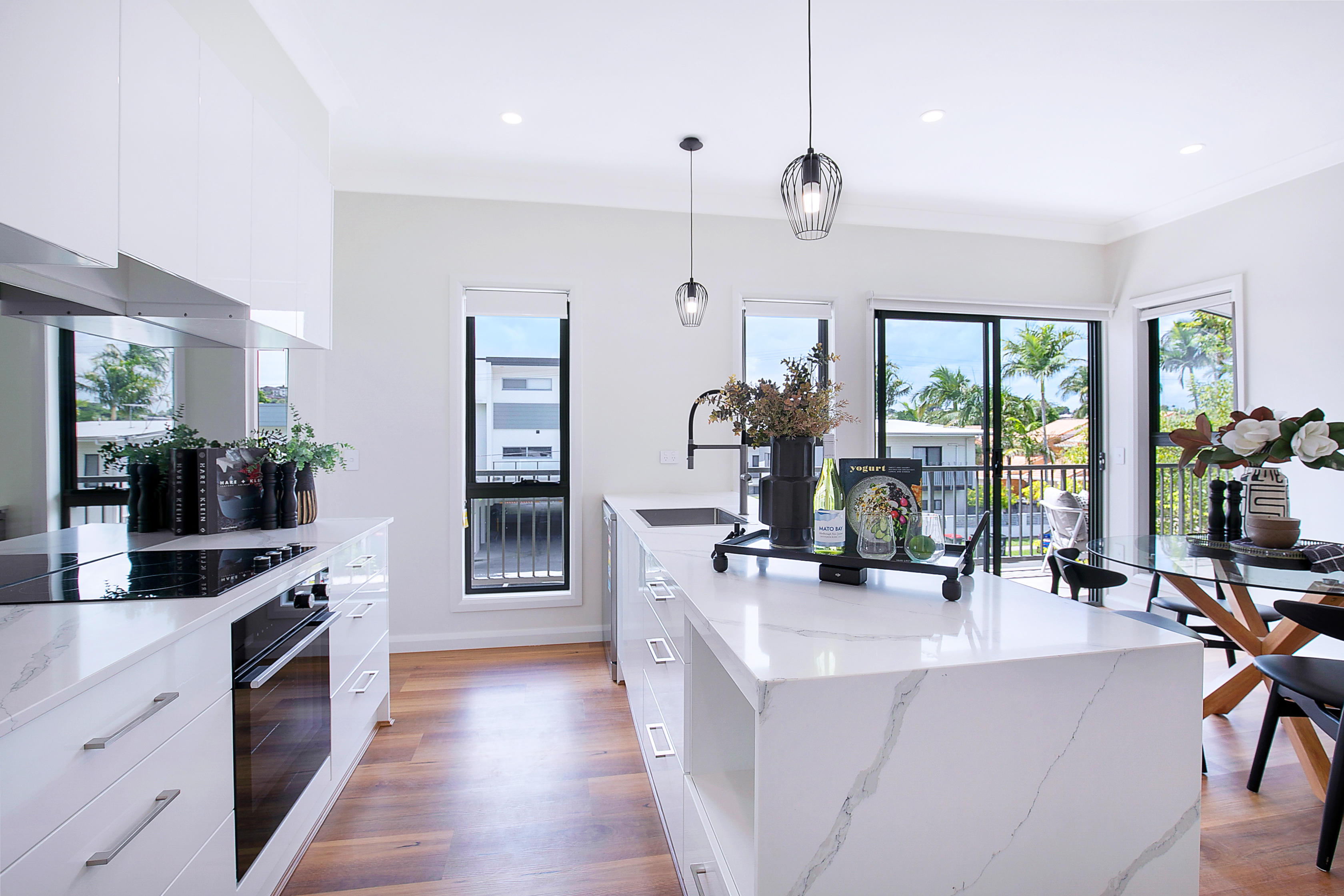 Relaxed indoor/outdoor living is created with open interiors unfolding to elevated balconies or garden courtyards. Showcasing exquisite kitchens, three carpeted bedrooms, two modern bathrooms and remote garages, inspired style and practicality seamlessly intertwine.